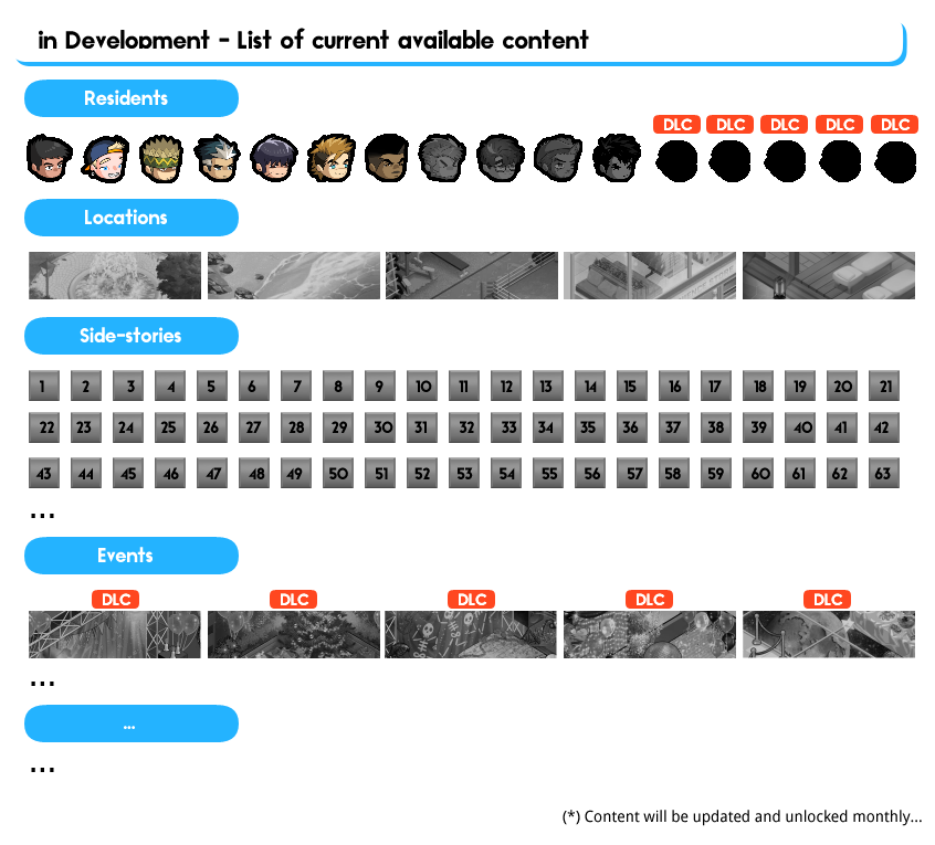 The game reveals more features and gameplay as you play it. The more you play, the richer the content and the bigger the world of Ero Condo becomes. And it'll be expanding as we continue to update the game. We have a roadmap for future content - you can join our Discord for more information!